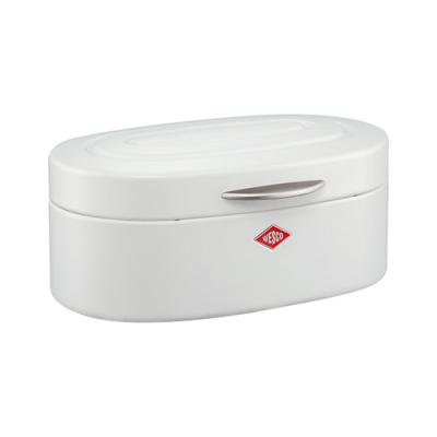 Einfach schön. Der Brotkasten Single Elly® ist ein echtes Retro-Schmuckstück, denn mit seiner ovalen Form und der dekorativen Prägung im Deckel erinnert er an Brotkästen aus den 50er Jahren. Die Brotbox ist besonders für kleinere Haushalte gut geeignet, da sie mit einer Standfläche von 32 x 19 cm nicht viel Raum auf der Arbeitsplatte einnimmt. In der Single Elly® lassen sich Brot, Brötchen, Gebäck oder Kuchen hygienisch aufbewahren. Lüftungslöcher auf der Rückseite der Brotdose sorgen für eine gute Luftzirkulation.