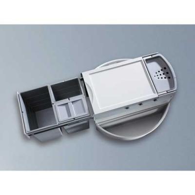dem Bio-Eimer schützt zusätzlich vor Gerüchen. In den seitlichen Schalen können Sie ebenfalls viele Dinge verstauen. Der Flüssigkeiteneimer im hinteren Bereich des Rondo ist abnehmbar und z.B. als Putzeimer mit 12,5 Liter Inhalt zu verwenden. Der Eimerdeckel hat einen Druckknopfverschluss und ist mit Löchern versehen. Damit kann er auch als Abtropfbehälter verwendet werden.
