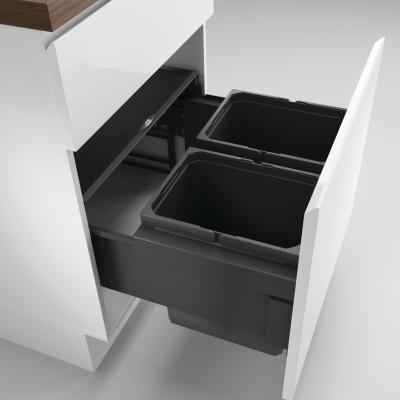 Abfallsammler als Frontauszugsystem mt Softeinzug und Anschlagdämpfung