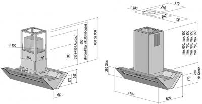 Mindesthöhe Schacht für Umluftfilter: 700 mm; für Hybridtechnik (EcoSwitch): 850 mm; für permalytfilter: 800 mm