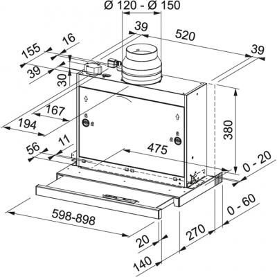 Betriebsart: Abluft / Umluft (Kohlefilter NICHT im Lieferumfang)