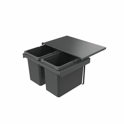 Mit einem stattlichen Gesamtvolumen von 44 Litern überzeugt das smarte Mülltrennsystem Cox Stand-UP 350 S/600-2. Es dient zur Integration in vorhandene Auszüge mit einer Schrankbreite von 60 cm. Trotz des großen Volumens besitzt das System nur eine Einbautiefe von 40 cm, sodass es sich auch in kleine Unterschränke oder vor der Untertischinstallation in Spülenschränken einbauen lässt. Ausgeführt ist die Abfallsammlung mit zwei robusten Behältern, die je 22 Liter fassen. Ein stabiles Rahmengestell fixiert die Mülleimer, die sich bequem herausnehmen lassen. Dabei unterstützen die umklappbaren Tragebügel. Ausgestattet ist die Mülltrennung mit einem Gesamtdeckel, der fest im Schrank montiert wird. Im Zubehör ist ebenfalls ein separater Verschlussdeckel erhältlich. Zudem kann das System mit der Cox Work Utensilienbox kombinert werden. Die Montage erfolgt auf dem Auszugsboden.