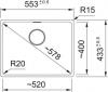 Ausschnitt für Unterbau: 520 x 400 mm R20