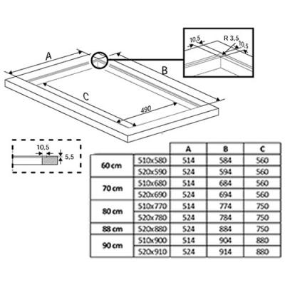 Höhe 4.8 cm, Breite 80 cm, Tiefe 52 cm