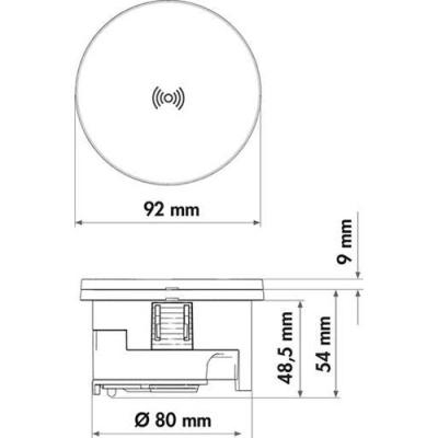 Ein kabelloses Laden bietet die runde Con-Aktiv® Einbausteckdose Evoline® Circle80 DisQ. Sie lässt sich in die Arbeitsplatte der Küche einbauen und fügt sich unauffällig in das Ambiente ein. Ein schwarzer Drehdeckel aus Kunststoff schützt das Steckdosenelement vor Verschmutzungen. Die Steckdose hat einen Durchmesser von 92 mm und benötigt eine Bohrung von 80 mm. Sie lässt sich bereits in Plattenstärken ab 10 mm einsetzen und benötigt nur eine Einbautiefe von 48,5 mm. Im Gehäuse ist ein Schuko-Steckplatz zur Stromversorgung von verschiedenen Küchengeräten integriert. Überdies ist ein Doppel-USB-Charger vom Typ A und C vorhanden. Als Besonderheit verfügt der Deckel über eine induktive Qi-Ladestation. Sie ermöglicht ein kabelloses Aufladen des Smartphones mit maximal 15 Watt über eine magnetische Funktion. Zur Nutzung der Qi-Ladefunktion muss das externe Steckernetzteil an einer separaten Steckdose angeschlossen werden. Die USB-/Elektrosteckdose wird über die 2.500 mm lange Netzanschlussleitung mit dem Stromnetz verbunden. Für eine alternative Anschlussart liegt ein Schutzkontaktstecker bei.