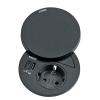 Steckdosenelement. Mit USB Charger (Ladestation). Geschlossen ist das Element fast eben mit der Arbeitsplatte. Durch Drehen des Deckels wird die Steckdose und der USB Charger freigelegt.