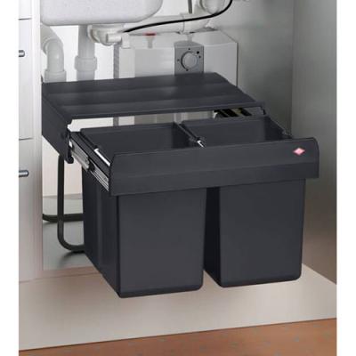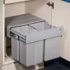 Das Mülltrennsystem Traditionline Double-Shorty 345 K/500-2 ist eine platzsparende Lösung, die sich besonders für die Küche in kleineren Haushalten eignet. Mit einer geringen Einbauhöhe von lediglich 330 mm bietet es sich zum Einbau in einen Spülenschrank mit Drehtür an, da genügend Platz für den Siphon und die benötigten Wasseranschlüsse vorhanden bleibt. Der Einbau-Abfallsammler umfasst zwei offene Behältnisse mit einem Füllvolumen von jeweils 15 Liter für die getrennte Bio- und Restmüllaufbewahrung. Dank des praktischen Vollauszugs sind sie leicht herausnehmbar, um den Inhalt zu entsorgen. Die Abdeckung befindet sich auf dem Tragegestell, sodass eine Geruchsbildung weitestgehend vermieden wird. Die Montage des Mülltrennungssystems erfolgt auf dem Schrankboden und ist im Handumdrehen erledigt.