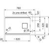 Mögliche Bohrungen für Armatur/Zubehör sind nur von unten angebohrt und müssen bauseits mit geeignetem Bohrer durchgebohrt werden. Bitte ggf. den Fragranitbohrer aus dem Sonderzubehör mitbestellen.
