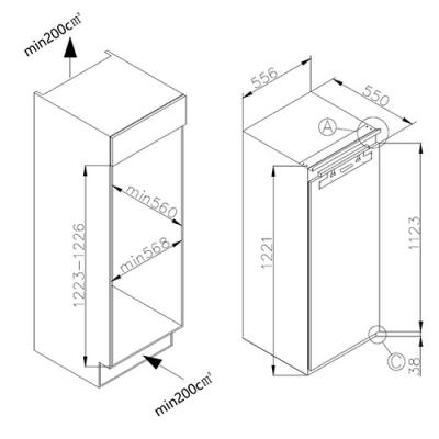 - Nische (HxBxT): 1223-1226 x 568 x 560 mm